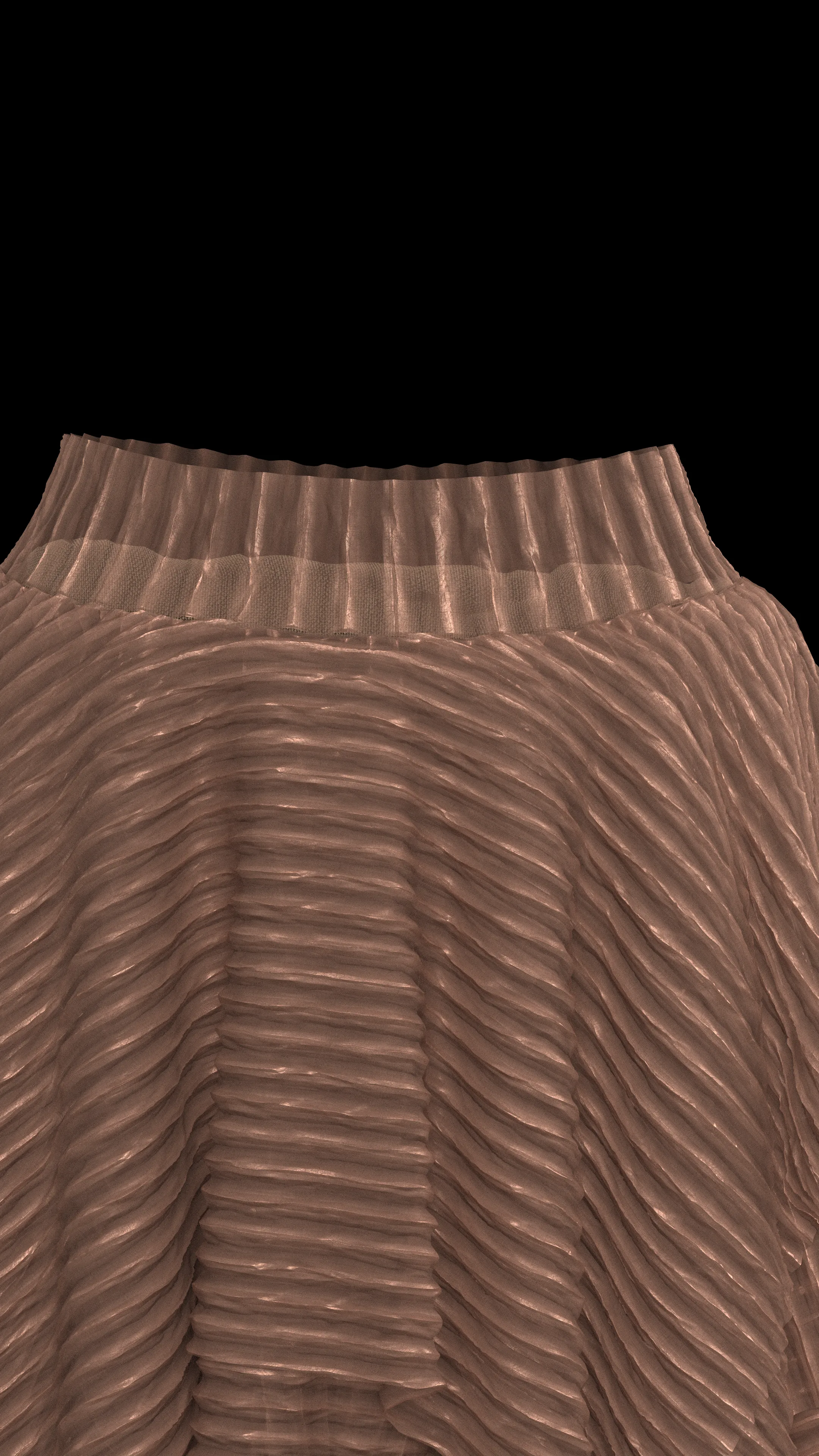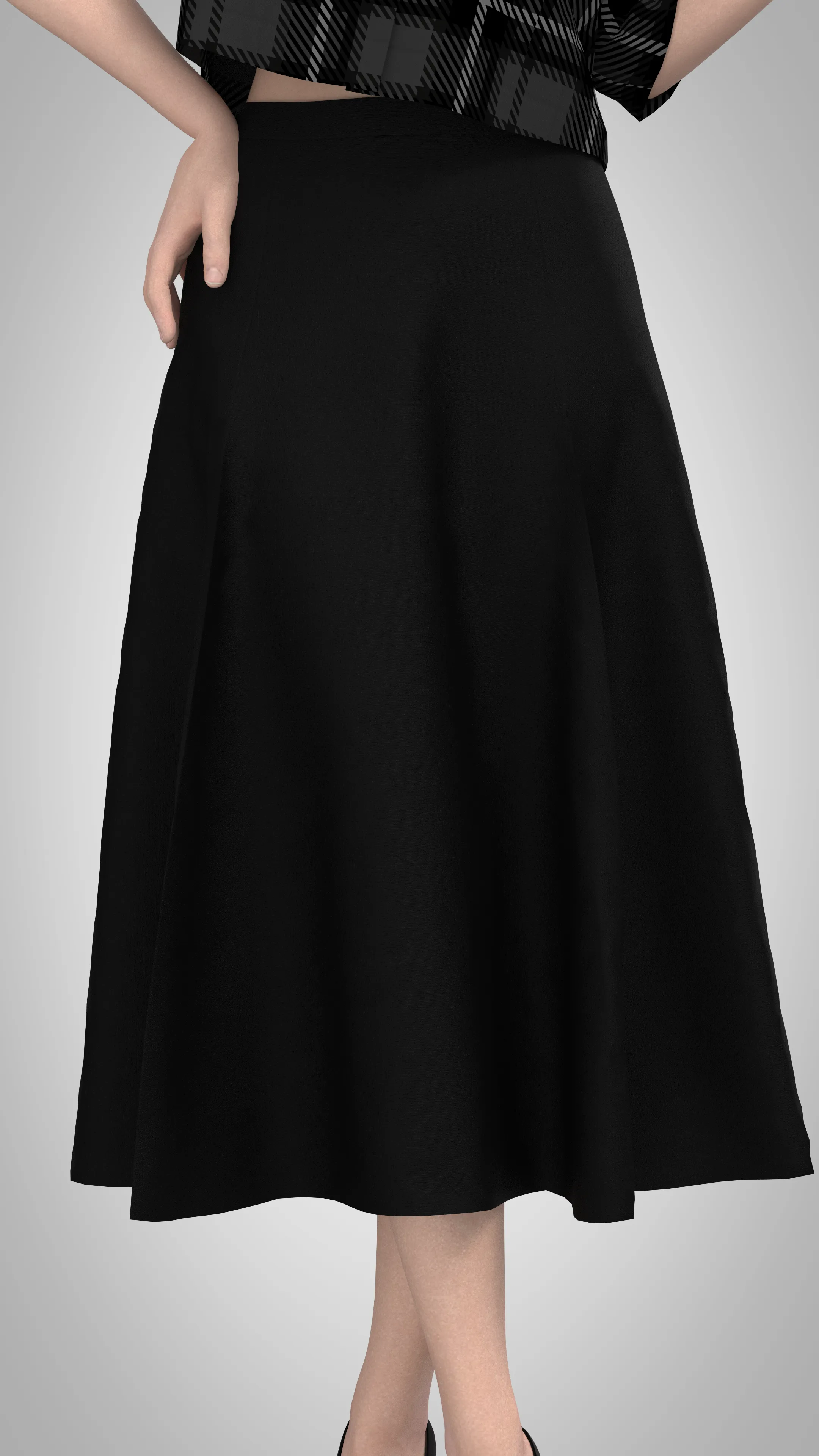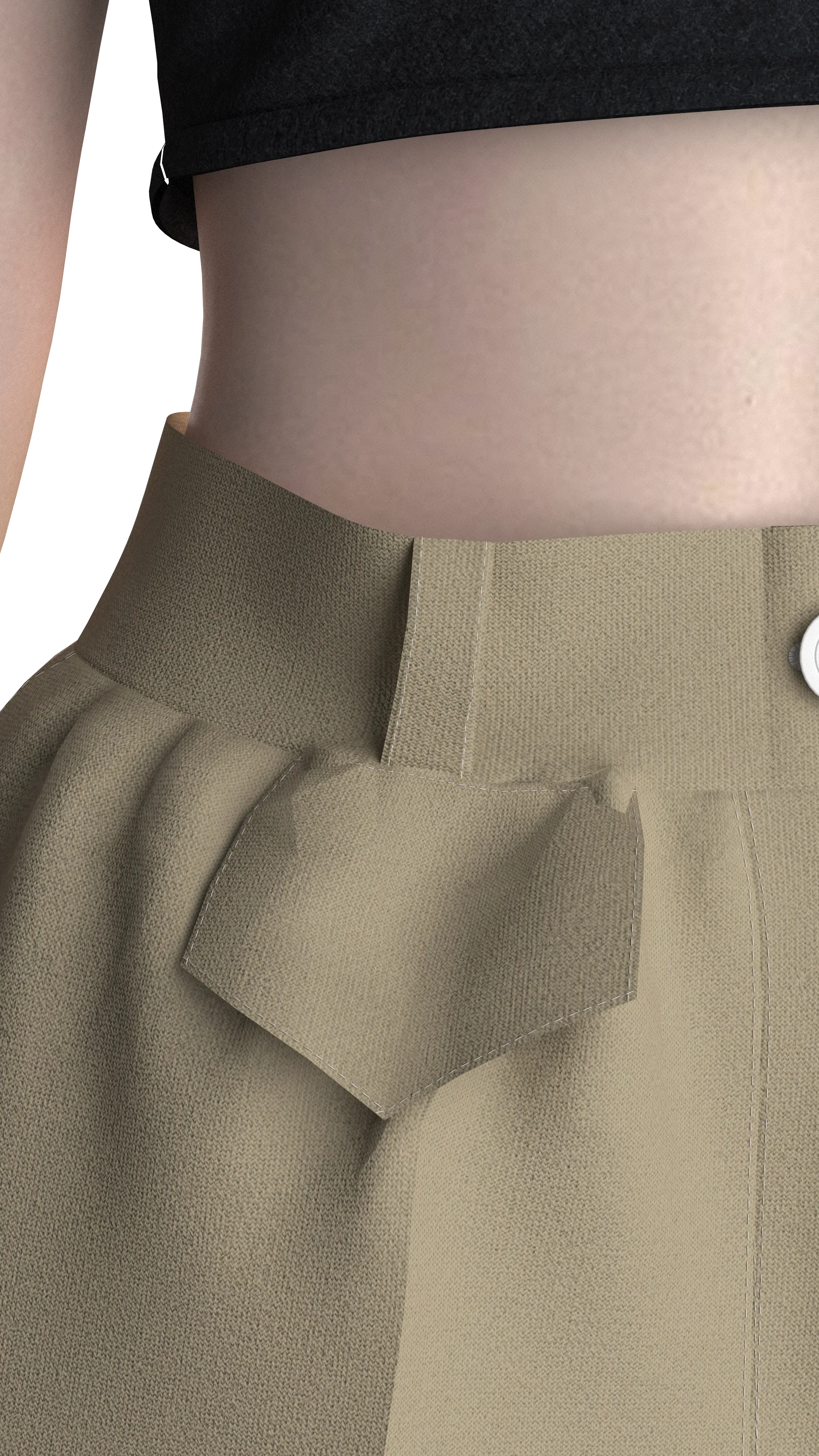 Rok A-Line pendek yang dilengkapi dengan lapisan rok persegi bertumpuk, menciptakan kesan volume yang dinamis dan berkarakter. Desain ini memberikan kesan feminin dan edgy.